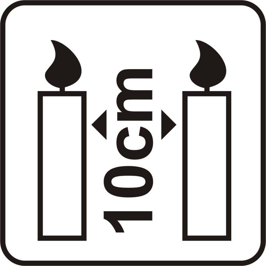 De minimale veilige afstand tussen de brandende kaarsen is 10cm.
