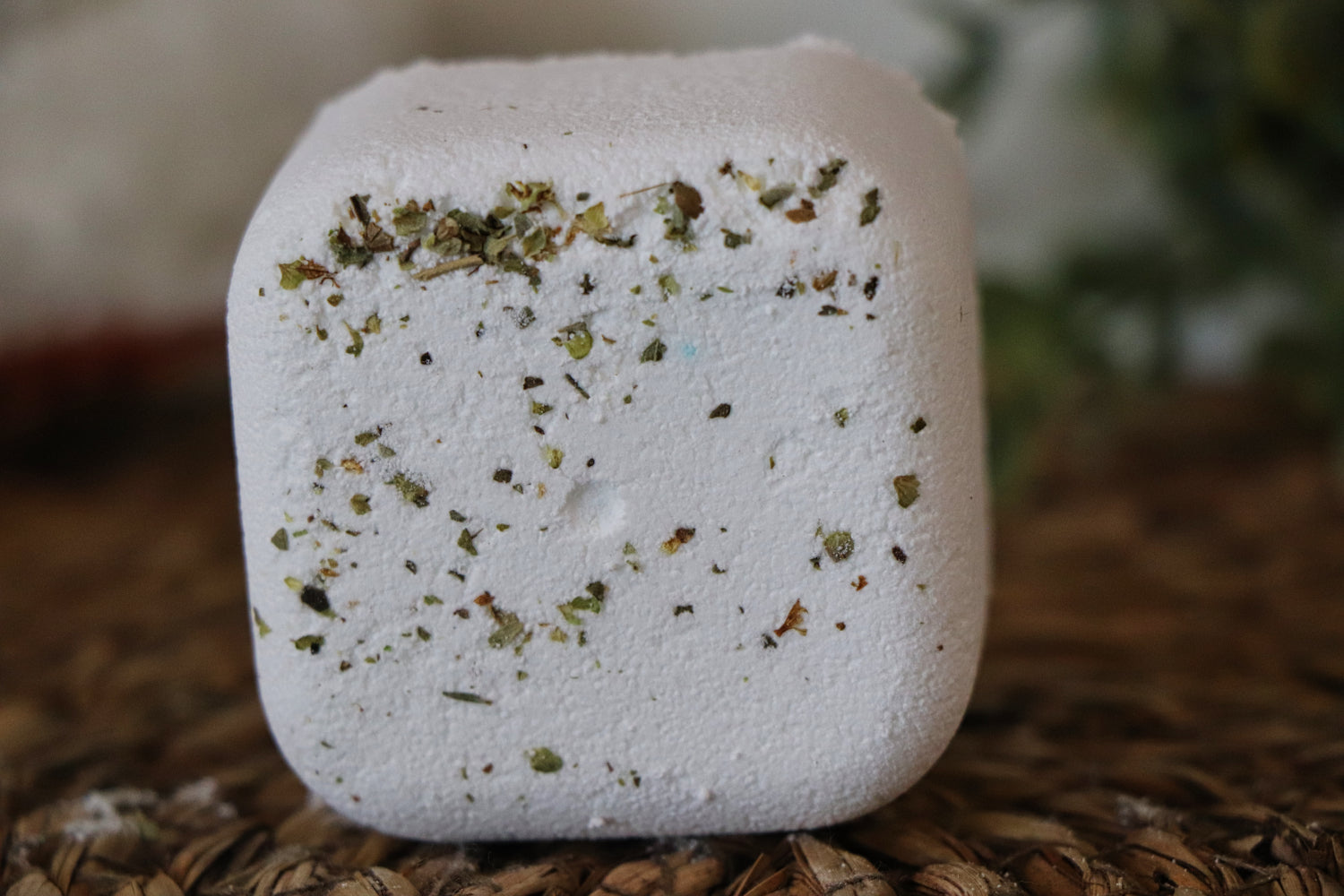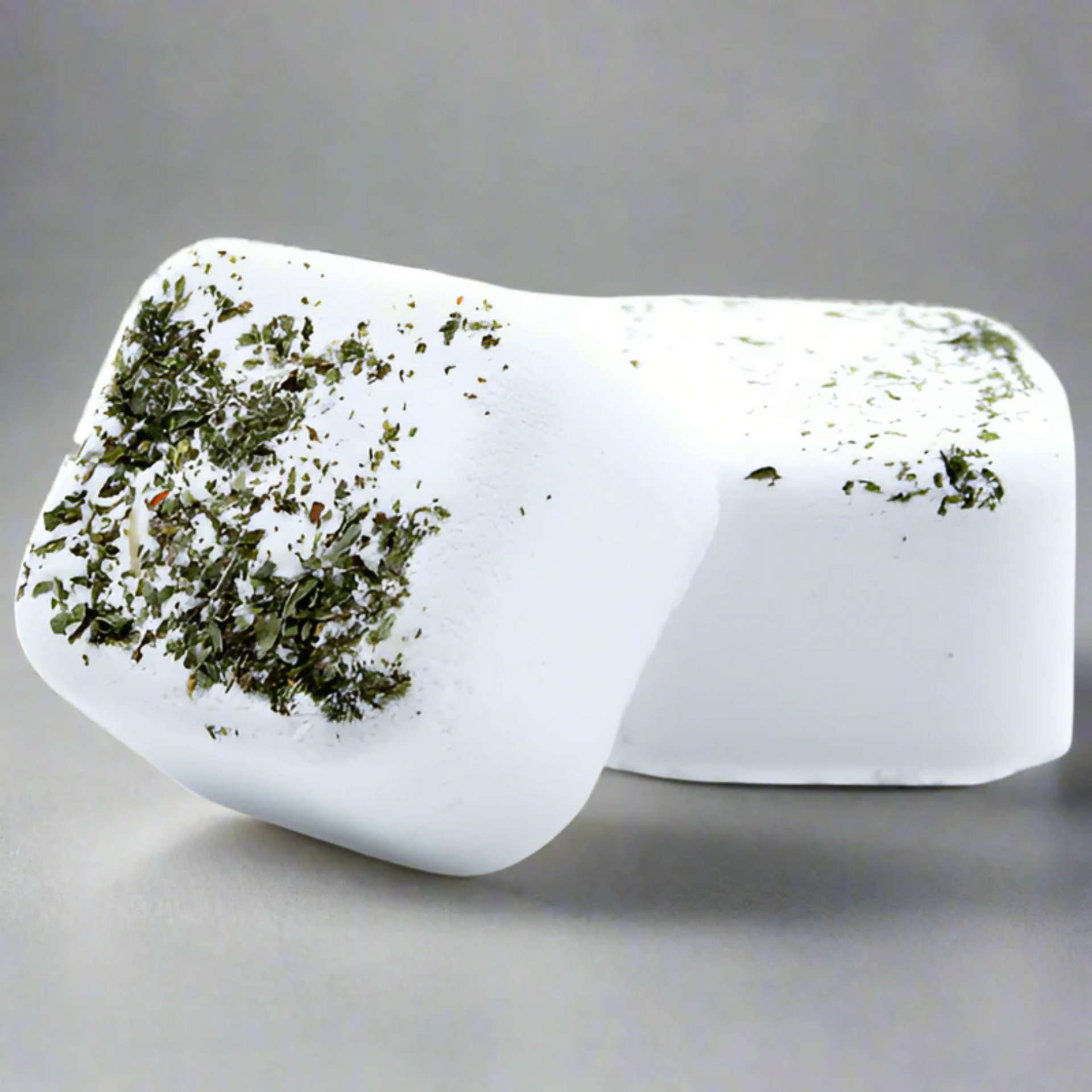 Shower steamers zijn gemaakt van baking soda, citroenzuur, maiszetmeel en etherische oliën voor een zachte, verkwikkende werking.