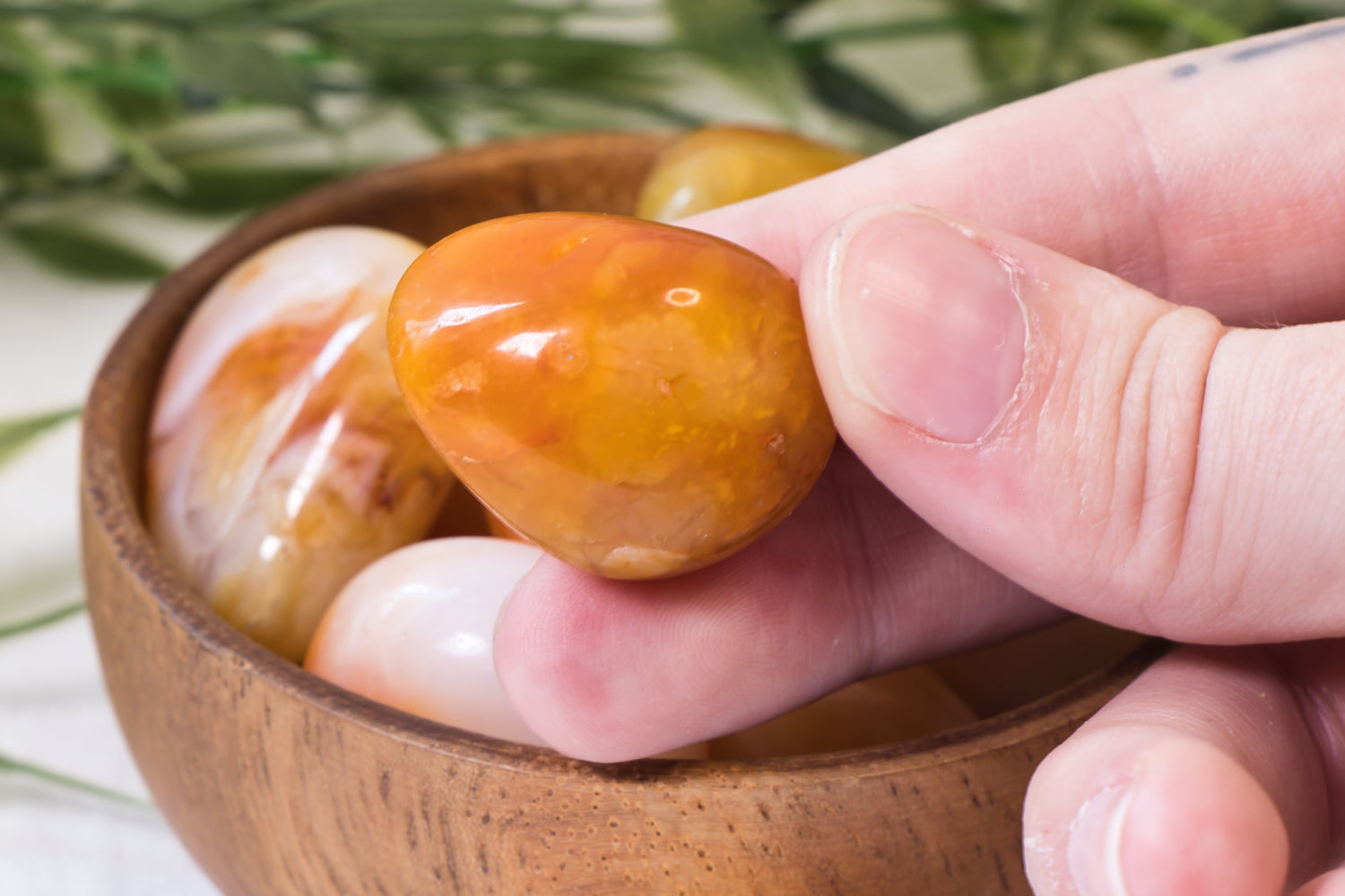 Carneool is een oranje variant van chalcedoon met een hardheid van 7. Deze steen komt vooral voor in India, Brazilië en Uruguay. Carneool activeert de eerste drie chakra’s en versterkt je levenskracht. Hij helpt je om meer zelfvertrouwen, moed en passie te voelen.
