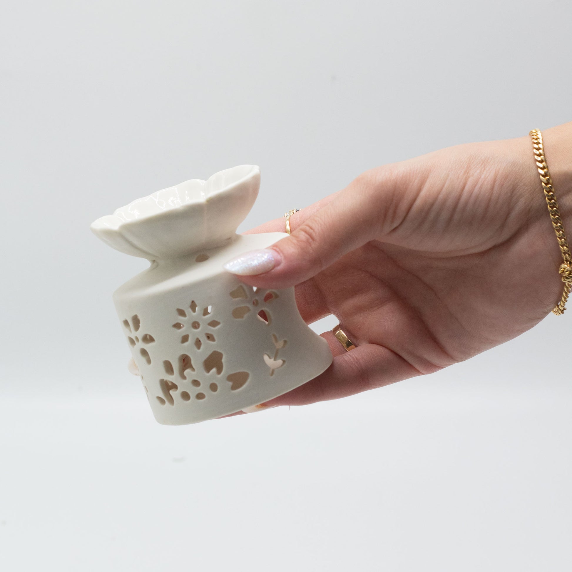 Deze keramische oliebrander met vogels en bloemen verspreidt een zachte, ontspannende gloed en creëert een magische sfeer in elke kamer. Perfect voor het gebruik van etherische olie of waxmelts, en ideaal als cadeau voor elke gelegenheid.
