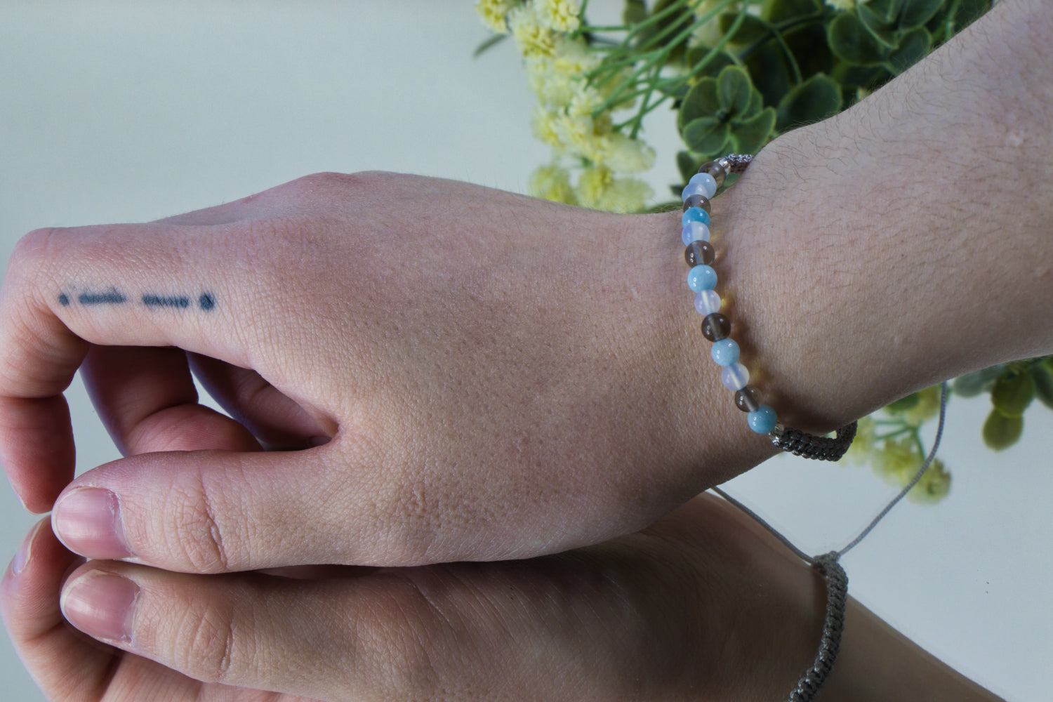 De set bevat een edelsteenarmband met aquamarijn, rookkwarts en maansteen, zorgvuldig gekozen om de medelevende en empathische aard van Kreeft te versterken.